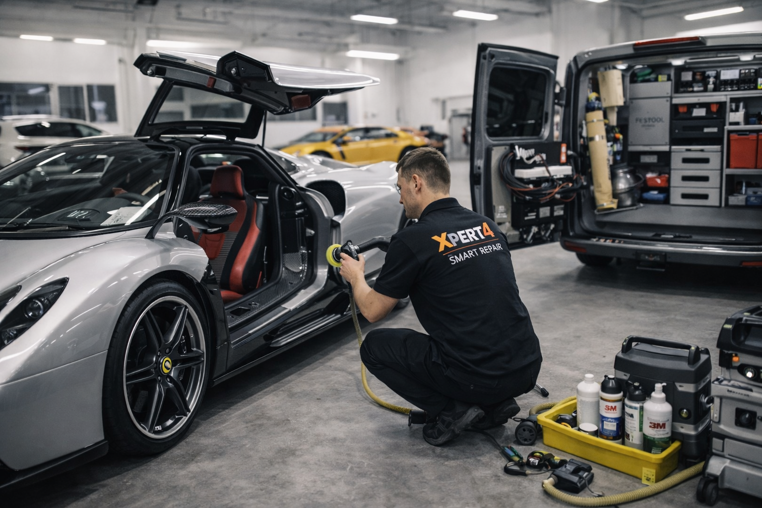 Sì, il nostro servizio è mobile: arriviamo con il furgone Xpert4 completamente attrezzato e interveniamo direttamente nella vostra struttura, evitando spostamenti verso la carrozzeria.